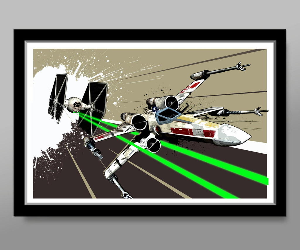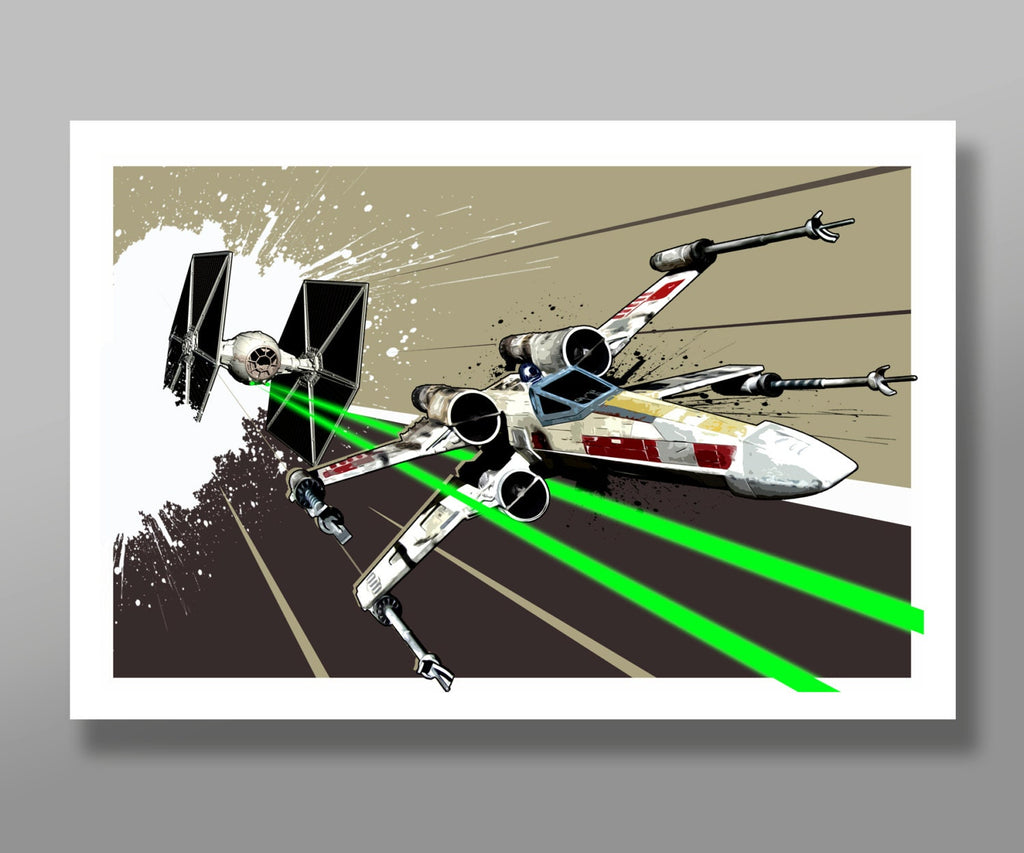 Pop Art Rebel Inspired Chase Tribute - Tie Fighter / X-Wing - 13x19 16x24 OR 24x36 Inches - Print 373 - Home / Office Decor